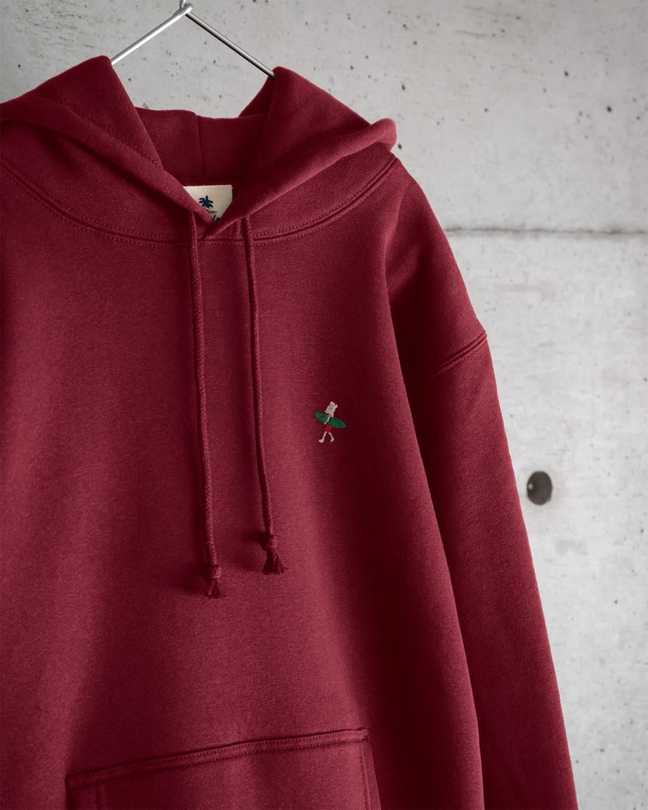 SANTA SURFER 手刺繍 パーカ(バーガンディ)
